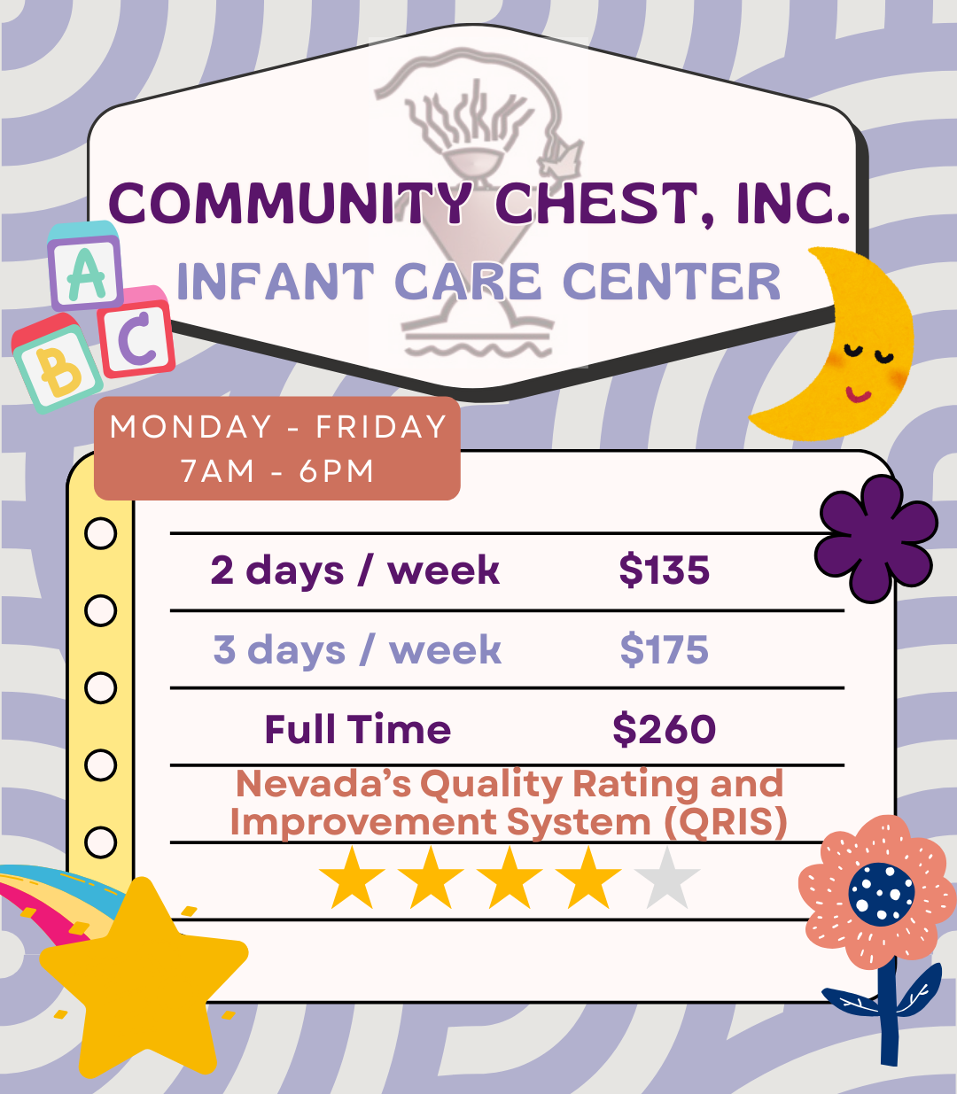 Our Infant Care Center provides developmentally appropriate, high quality early childhood education and care from birth-18 months. We focus on maintaining safety and well-being of children along with emphasizing positive guidance and interactions. We strive to help kiddos of all ages reach developmental milestones. We also lay a foundation for confidence and independence skills to be built as the child grows. All of our staff are working towards their Child Development Associate (CDA) or B.A. in Early Childhood Education.
