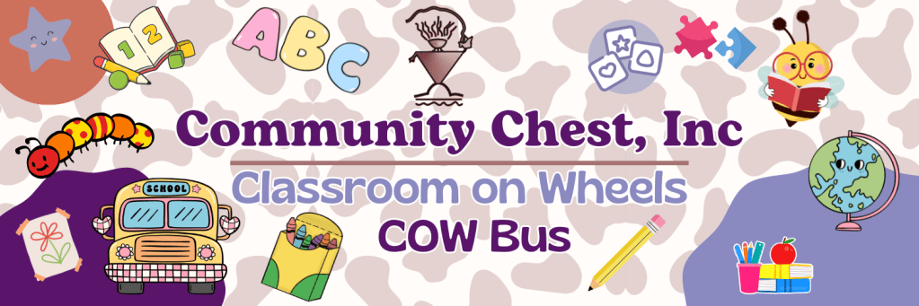 The Community Chest, Inc. COW Bus mobile preschool program offers early education instruction aligned with the Nevada PreK Standards. Classes run for 2.5 hours, four days a week, and are available at various locations throughout Lyon and Storey counties, as well as in Tonopah and Hawthorne.