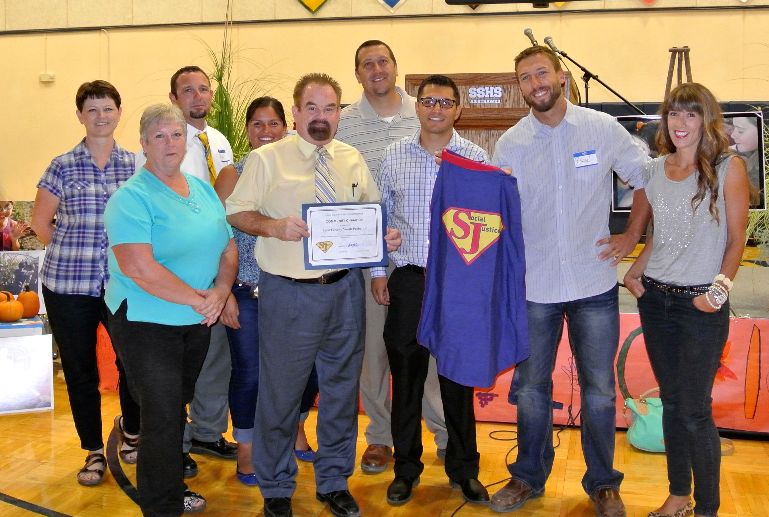 Bill Fehr has tirelessly volunteered 20 hours per week over the last six years at the Dayton Food Pantry. With a can-do attitude, he just does it because “it needs to get done.” The food pantry could not be managed without him and his hard work, and his dependable work ethic is a model for all. He is a humble leader and treats all like they are his family.Lyon County Youth Probation was chosen because, to a person — whether Natasha, Eric, Brian, Roger, Rosa, Jessie, or whoever — they are genuine, well-intentioned, and driven by a desire to sincerely help the youth and their families have better lives. The youth under their watch respect and admire them. Because they model the strength inherent in vulnerability and the vulnerability in strength, they give permission to the youth who look up to them to do the same. Their actions re-instill trust by the youth, their parents, and the public.The Silver Stage School Complex is a model of community and school partnership. Their answer is always “yes” if it is going to help our kids. Here is but a short list of their school community successes: MORE, Silver Stage Food pantry, school gardens, flu shots, Food Summit, school composting, community gardens, Get Real Events, Youth dental events, SOS, Co-op, Food drives, and the CNA program. Special thanks goes out to Rachel Leach, Darlene Betts, Patrick Peters, Peggy Merril, Donna Ray, and Jim Gionotti–this team includes principals to custodians and they are a powerful community partnership team.